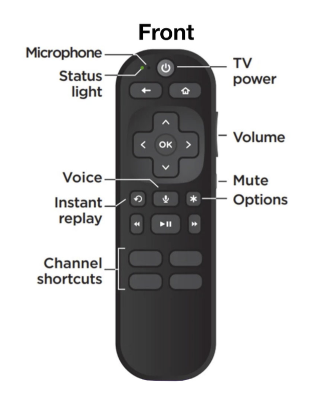 Note: The RCGZ1 remote does not have the lost remote finder, headphone listening, or personal/programmable shortcut keys. If you require these features, please see the Roku Voice Remote Pro.