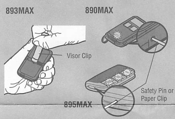 - Install the visor clip (not applicable for Model 890MAX).
