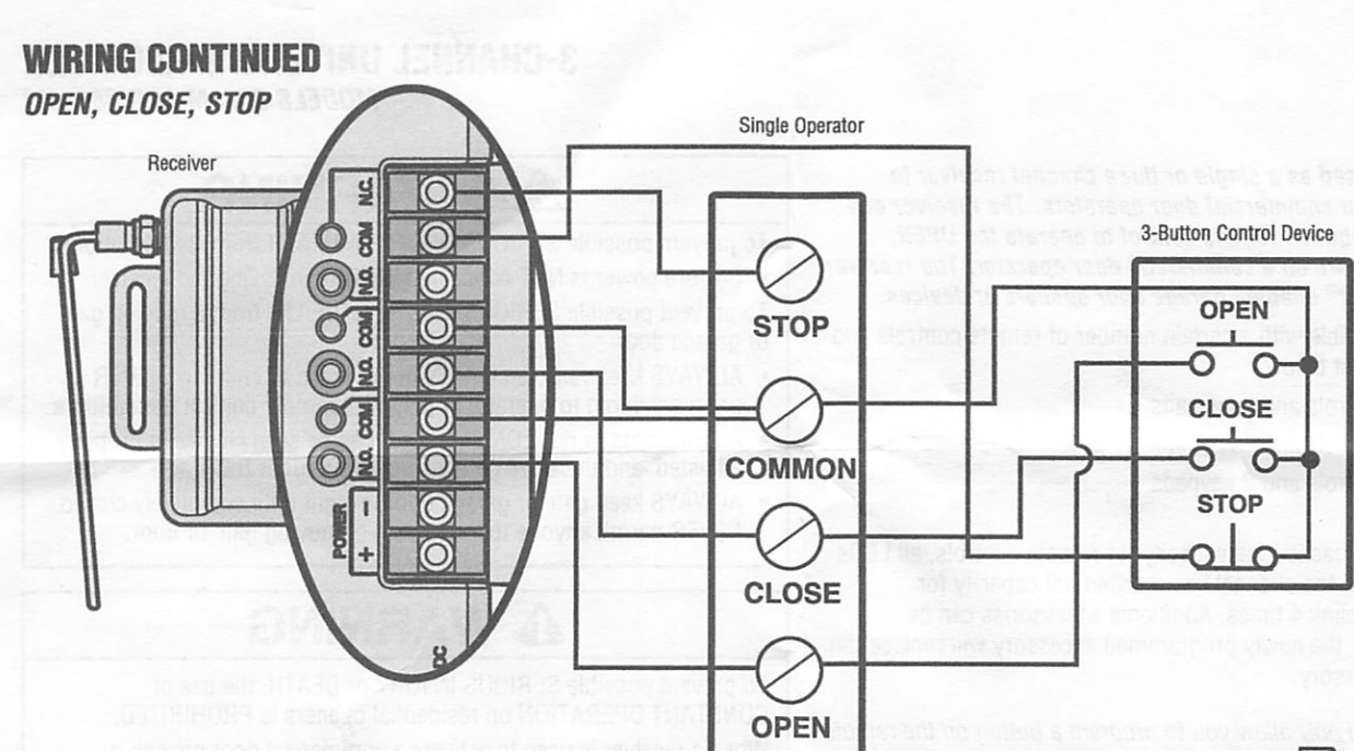 Refer to your commercial door operator or gate operator owner's manual or wiring diagrams for specific wiring information.